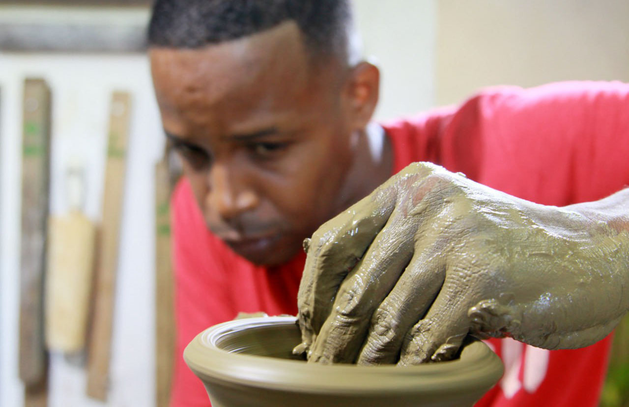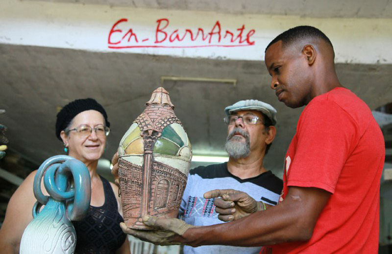 Creadores como el joven santiaguero Leonardo Laugart, todo un experto en el modelaje desde el torno de piezas de grandes dimensiones, ya se encuentran en la sede principal de En_BarrArte.