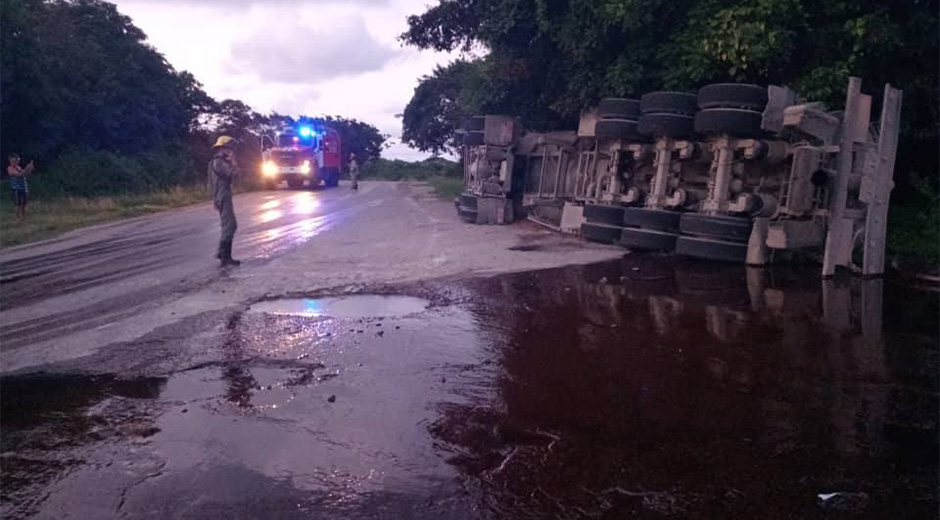 Cerca de las 19:00 horas de este lunes, una rastra que transportaba petróleo crudo volcó en Vía Blanca cuando el conductor perdió el control del vehículo en la maniobra de incorporación a la vía hacia Puerto Escondido, en el municipio Santa Cruz del Norte, provincia de Mayabeque.