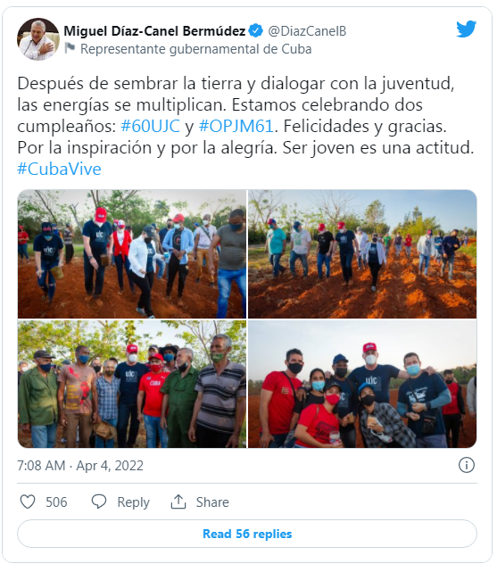 Hombre desprejuiciado, abierto al diálogo, entusiasta de las nuevas tecnologías, activista de las más nobles causas, defensor de la familia como espacio de libertad y realización personal... Miguel Díaz-Canel no ha dejado de ser el hombre inquieto y apasionado que fue hace años. Sin poses ni distancias celebra y trabaja con los jóvenes. No cree que sean la garantía del futuro: los sabe puntales del presente.