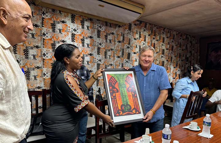 Para sellar la visita y como muestra de la riqueza cultural de Sagua La Grande, Liz María Wilson Reyes, la máxima dirigente gubernamental del municipio, obsequió al Koronelli una réplica de un cuadro del mundialmente reconocido pintor sagüero Wifredo Lam.